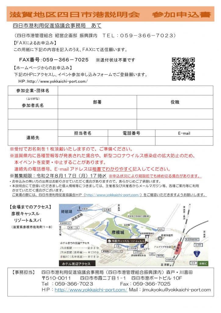 四日市港利用促進協議会では、四日市港の航路、外貿コンテナ貨物補助金、背後圏の道路網整備状況といった最新の現況・利用の利便性を紹介するための説明会を、彦根市で下記の内容で行われます。